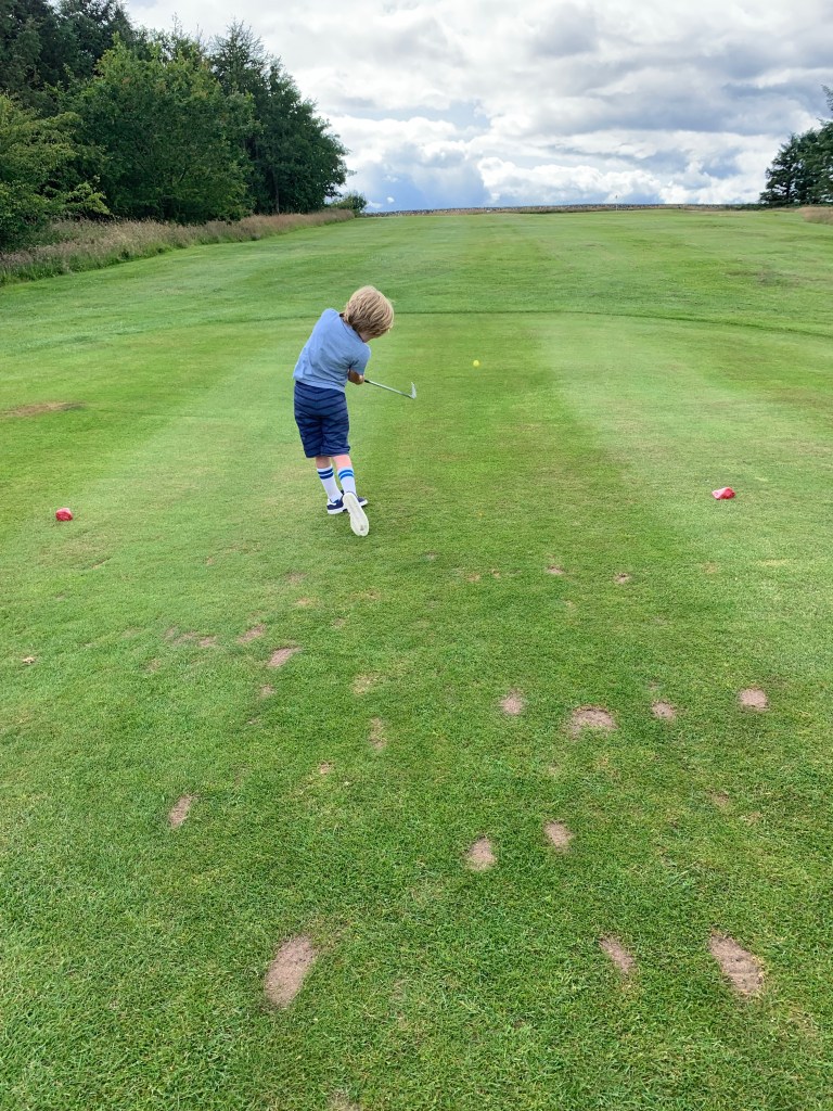 Alexander driving the ball at Colvend Golf Club.