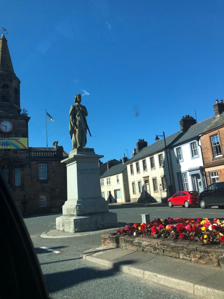 Statue of Robert the Bruce in Lockerbie Scotland (as seen from the car window)