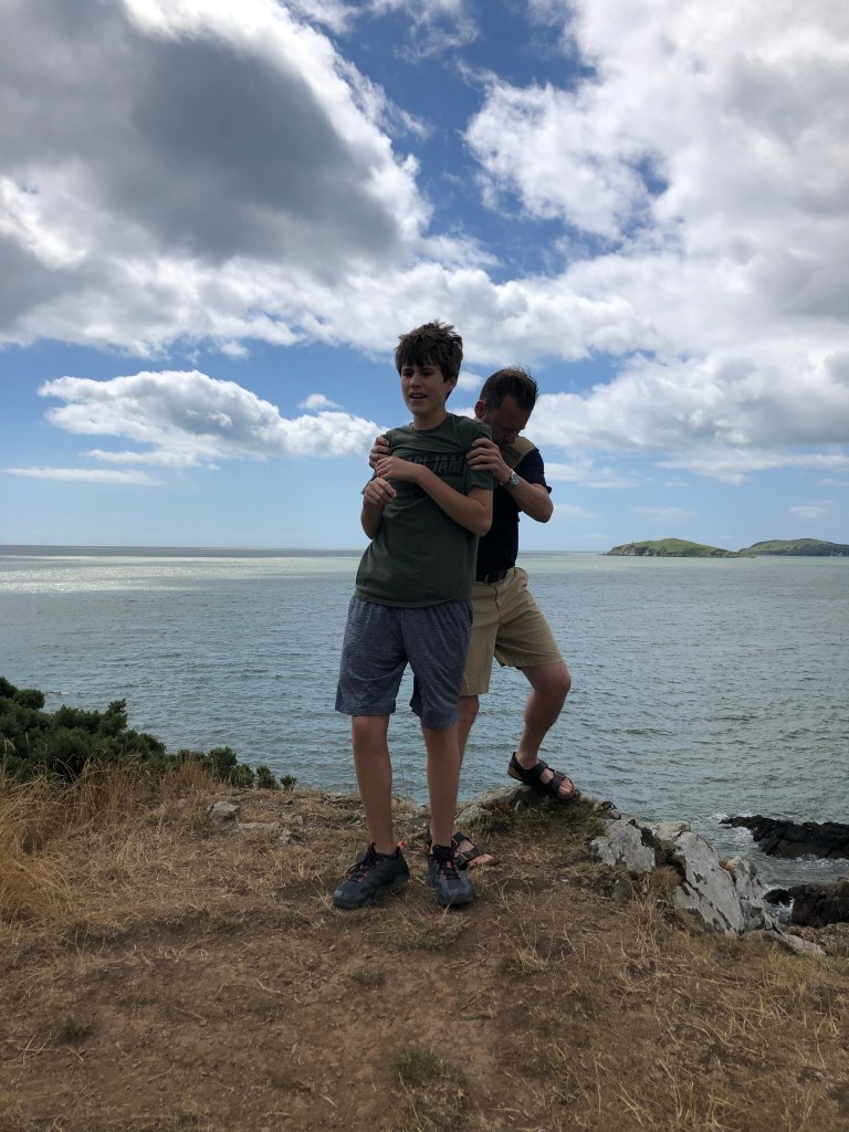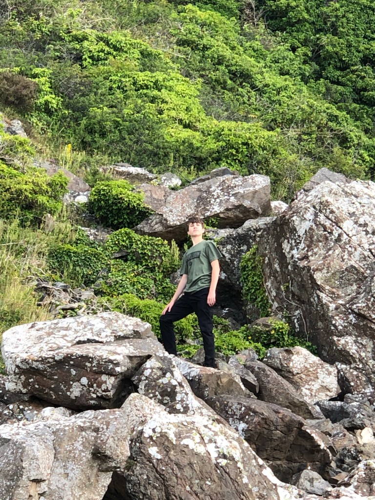 Xavier in camouflage on the Coastal Path.