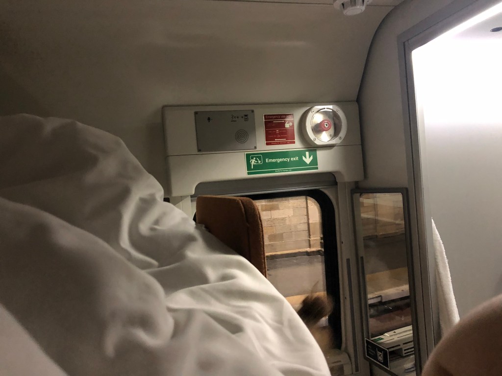 I brushed my teeth, and then Alexander took a shower that he said was the WORST shower he had ever taken in his life, and that it was cold, and the water flow was inconsistent, but when I took the showlet, I didn’t actually think it was that bad. I got in bed and I wanted to take video of the train leaving the station from the window. My mom was below me on the bottom bunk, and we were at the ready. We we just getting comfortable in our beds when there was an announcement. I didn’t catch the beginning of it because we were playing George Winston to calm us, but I got the gist of it. The Caledonian Sleeper train was not going to go anywhere.