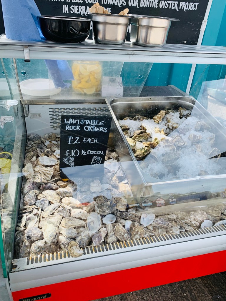 If you’re an oyster connoisseur, visiting the north-east coast of Kent is a true Mecca. The oyster beds are just next to the Thames Estuary (where the River Thames meets the North Sea). The seaside has signs old and new of its deep connection with oyster cultivation. As a main component of the Victorian diet, oysters were favored for their cheap cost and high nutritional value. In the 1850s the town was sending as many as 80 million oysters a year to Billingsgate fish market in London.