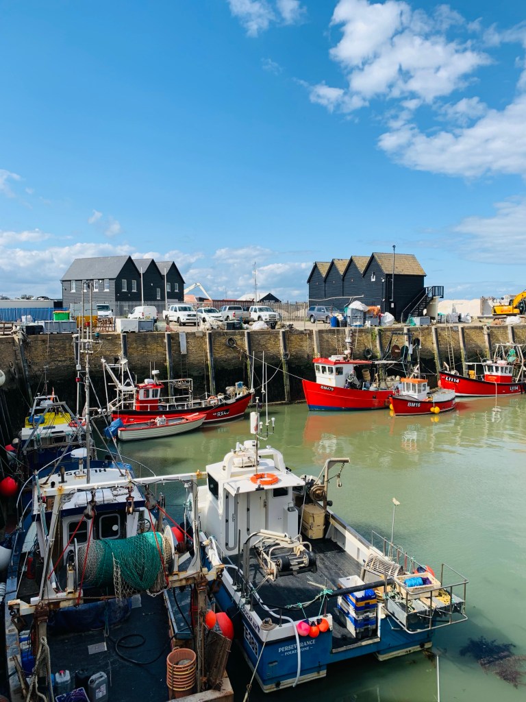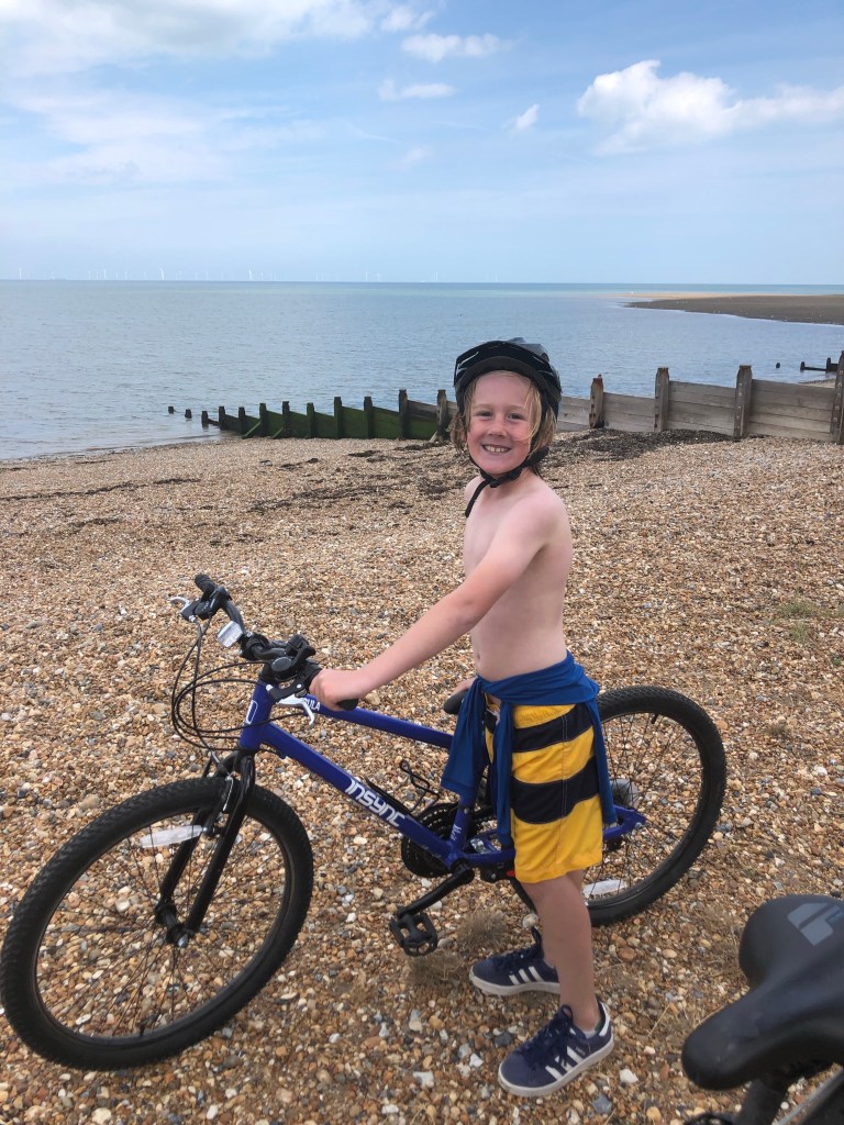 I spent the week remote working but was able to spend mornings with the boys, exploring the town. We cycled the coastal path from Whitstable to Herne Bay, went crabbing and swimming, and continued our rock skipping journey on British waters.