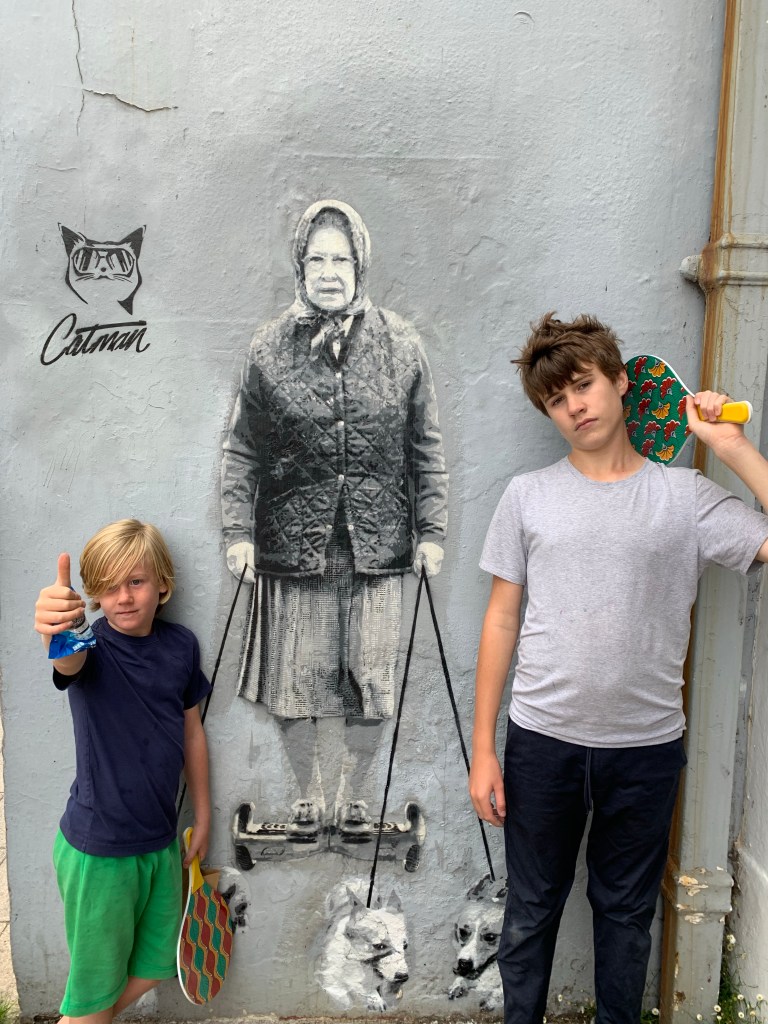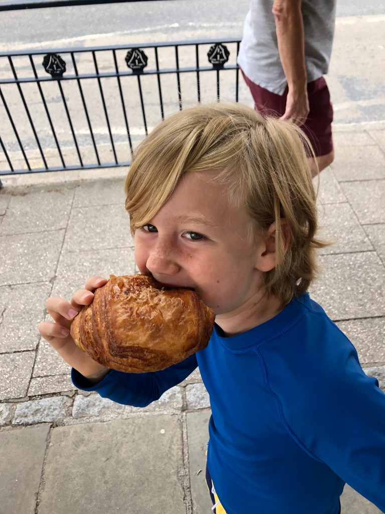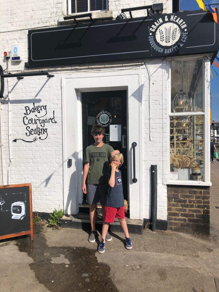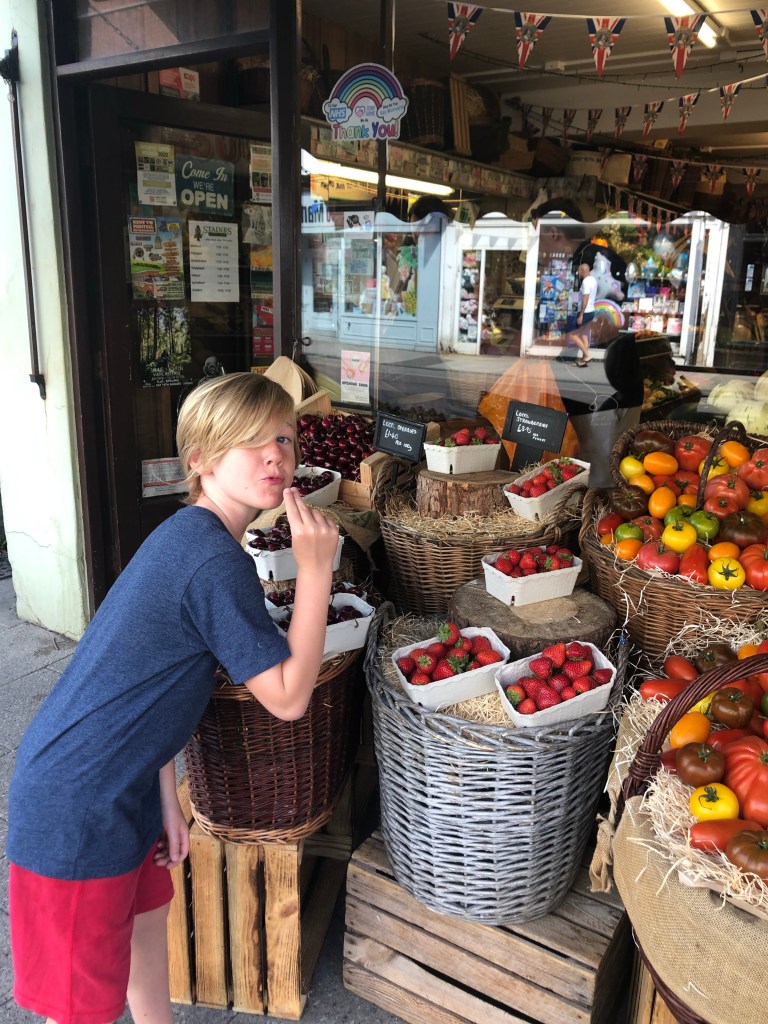 The high street in Whitstable is called Harbour Street and has everything one could desire. Grain and Hearth for the most delicious sourdough and the largest pain au chocolat. Hubbard’s Bakery for Xavier’s favorite jam doughnuts. The Staines farm shop for endless punnets of British strawberries and cherries. I think Alexander likely polished off a punnet of strawberries a day for nine straight days. The Cheese Box for British goat cheddar. And Frank for a really cool wooden sling shot that we just had to purchase in order to sling rocks into the ocean at top speed.