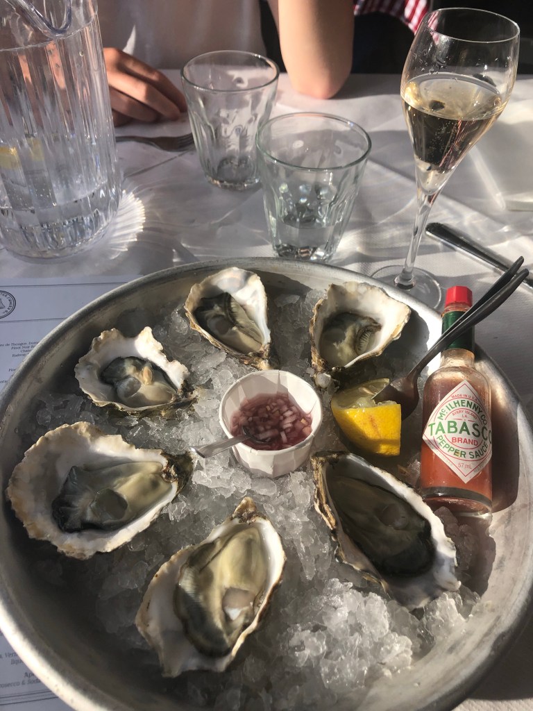 We celebrated my 47th birthday with a drink at The Old Neptune, a classic pub on the beach known as Neppy to the locals. Film buffs and Peter O’Toole fans will have seen the pub and town featured prominently in Venus, which earned him his eighth (and last) Oscar nomination for best actor. Then we had dinner at the Whitstable Oyster Company, a restaurant we visited many times over the years and the place where two-year old Xavier actually once ate oysters. I wish he were as culinarily adventurous now as he was then. Dinner was devine — oysters, champagne, dover sole. A true celebration.