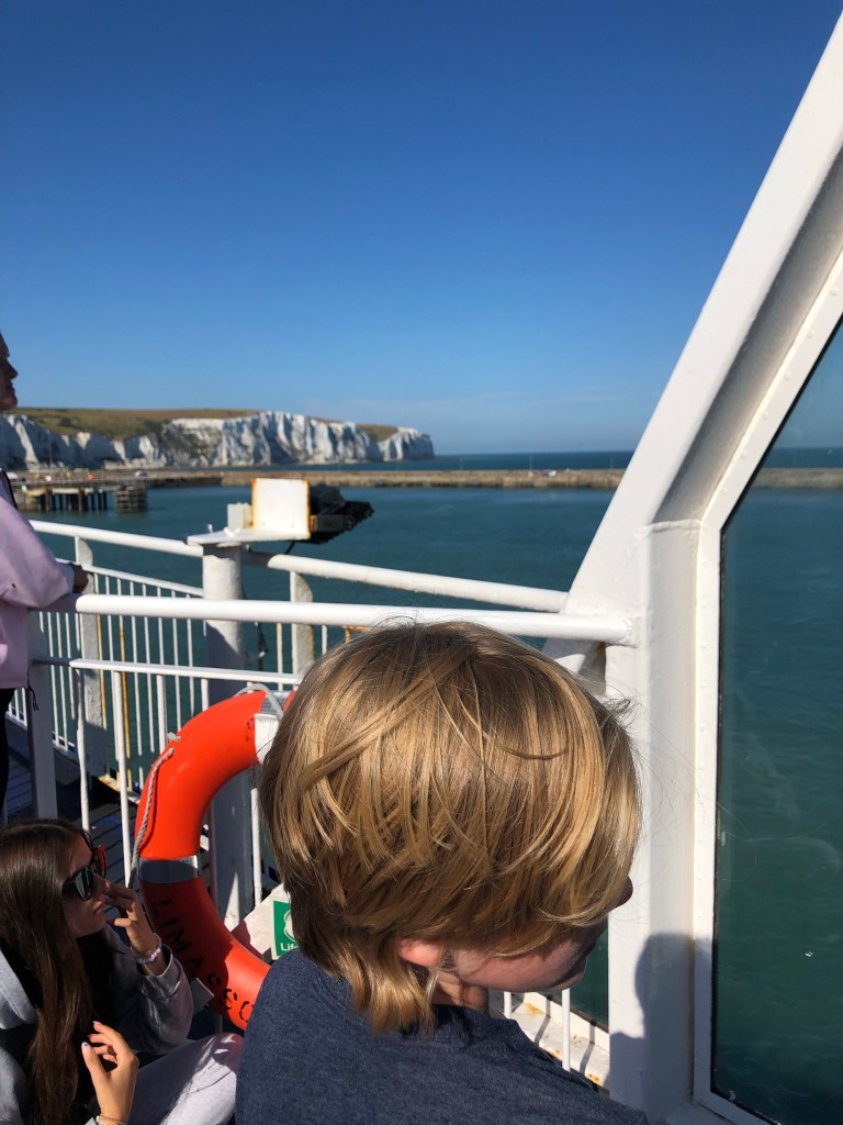 We decided to head to the ferry and wait out the few hours before our departure which meant that the boys drank Sprite and ate potato chips for lunch (not the first time this happened on this trip nor the last). Luckily, Josh got us on an earlier ferry, quite the coup considering the stories of the previous week about the horrors of travel from Dover, stories that were reinforced by the bus driver who took us from the check-in to the ferry. He told us that the previous week, it took him eight hours to get to work and he only lives eight miles away — that seems outrageous but that’s what he said!