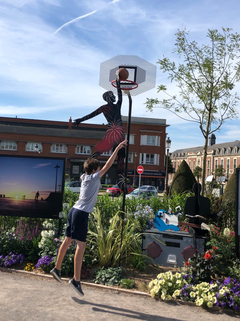 We got to our hotel then had a nice dinner at L’Hovercraft, a Calais institution that first opened in 1966. Alexander thought it was our destiny to eat here as he’d just read the book, Framed by James Ponti, and there is a particularly funny line, “My hovercraft is fully of monkeys.” Xavier and Alexander did a great job ordering their first meals en Francaise (un burger au poulet et un cheeseburger sans fromage et tomate).