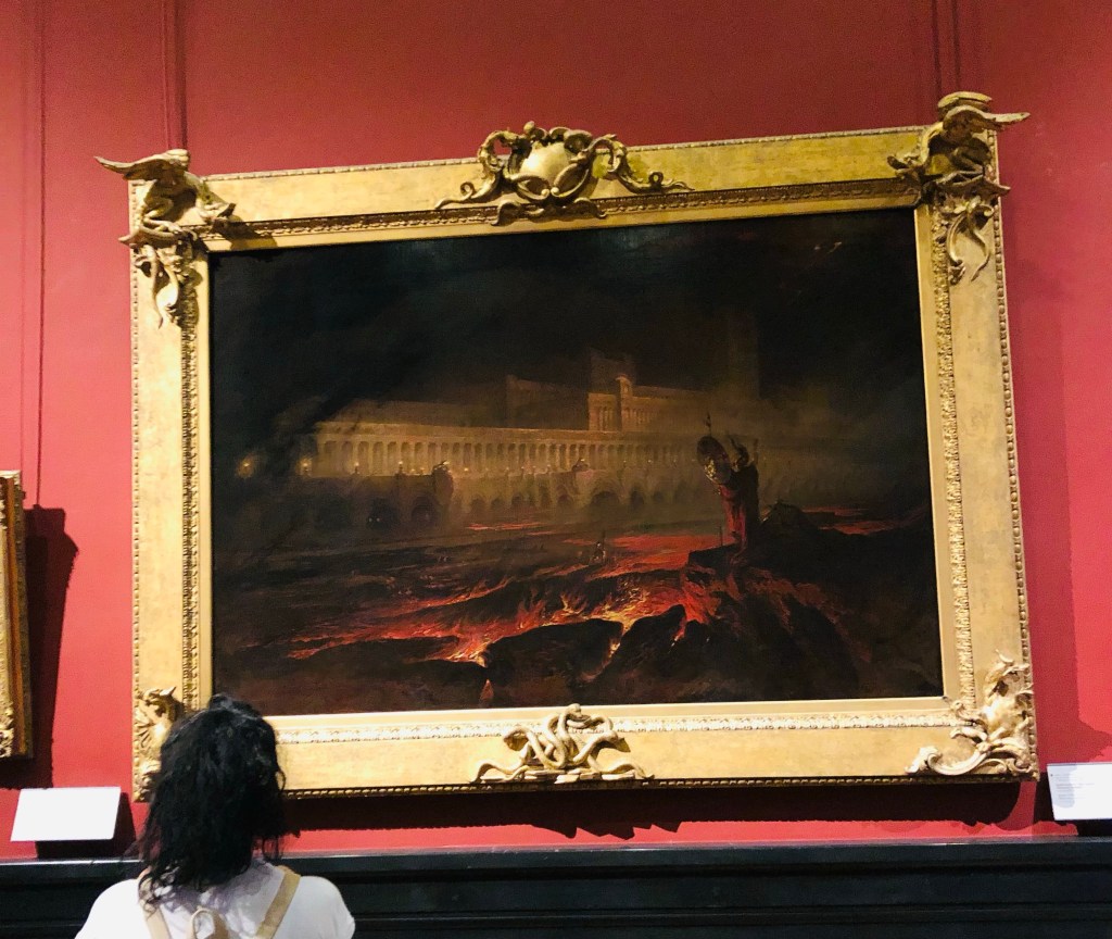 We then began to head out. We passed by some paintings and one of them was so cool. It was the Devil standing over a crack into hell. It’s called Le Pandemonium by John Martin. The description says that the “painting illustrates a scene from one of the greatest English epic poems [Paradise Lost by John Milton]. Satan has assembled his army of fallen angels before the huge palace of Pandemonium, built by the demons.”