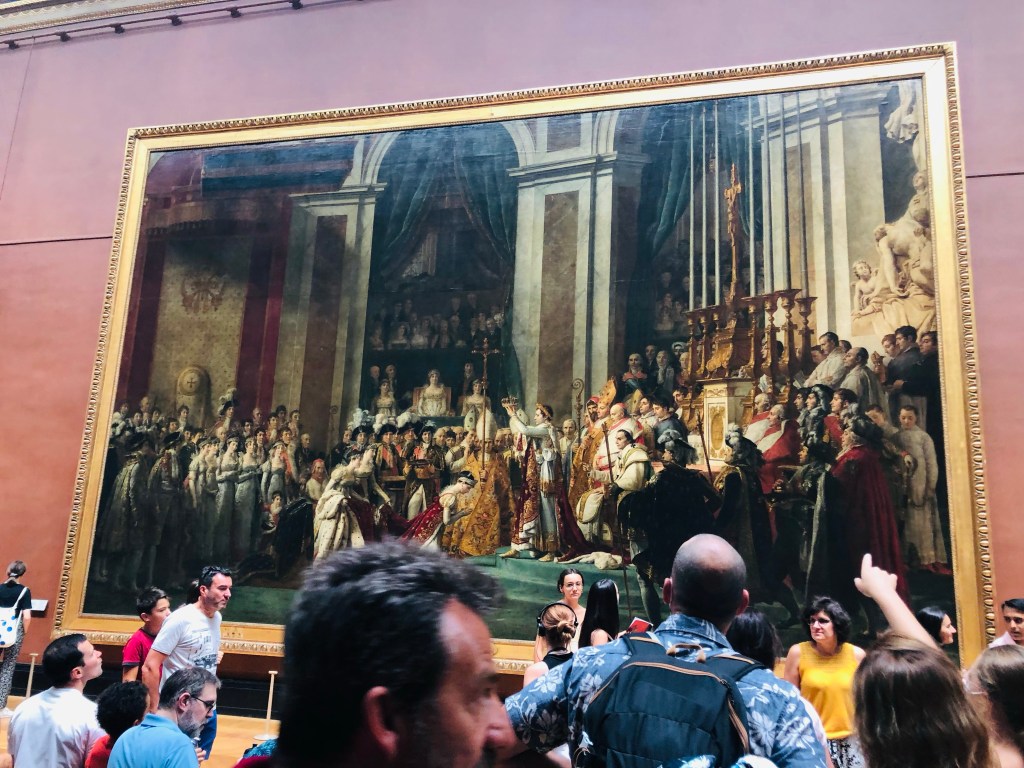 We then began to proceed to The Coronation of Napoleon by Jacque-Louis David, again seeing some cool paintings along the way. We saw a painting of Jesus carrying his cross, some more paintings by Leonardo Da Vinci, and a statue of this one guy’s head in front of a mirror. Once we got to the Coronation painting, we admired it, Alexander took some selfies, and Alexander was nearly murdered.
