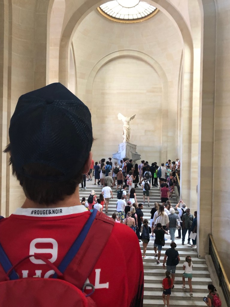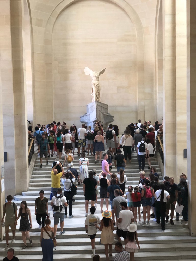 Once we got in, we got some water to cool off and talked about what we wanted to see. We agreed on some major pieces, like Winged Victory and Liberty Leading the People by Delacroix and we decided we would head in the general direction of the Mona Lisa but, as I said earlier, we didn’t actually think we would get to see the Mona Lisa due to all the people in the museum at the time.