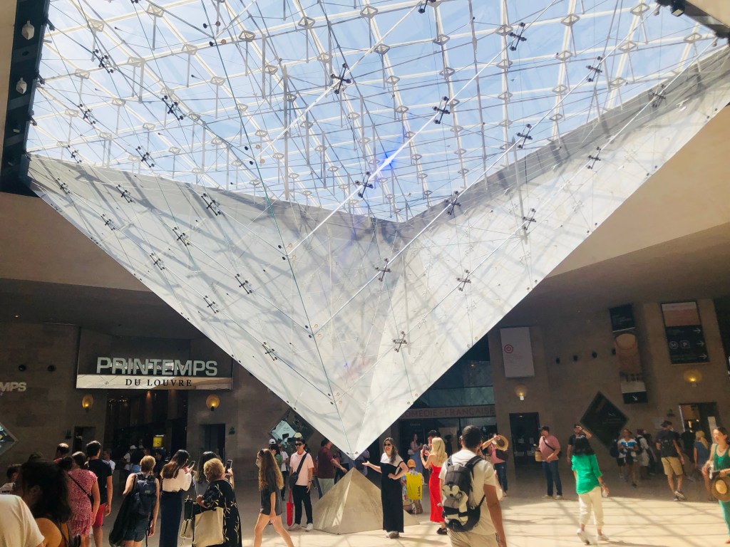 Once we got to the upside-down pyramid, I was amazed. We had seen The Da Vinci Code movie a few days earlier, and I loved the final scene of the movie. It was so cool!