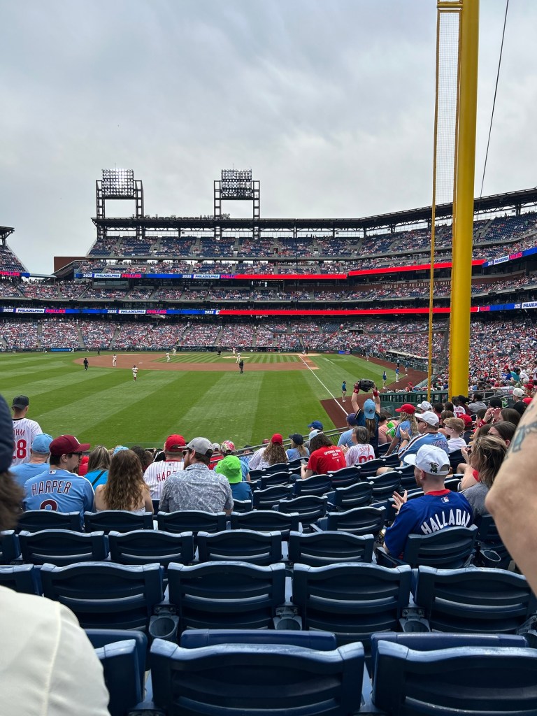 It was a beautiful day, a little hot for April with a high of 83 degrees. The Phillies were playing the Miami Marlins. It was a high scoring game with a final of 10-11 Phillies. The Marlins staged a close comeback in the top of the 9th, scoring 3 runs with 2 outs but couldn’t quite pull it off. The home team won.