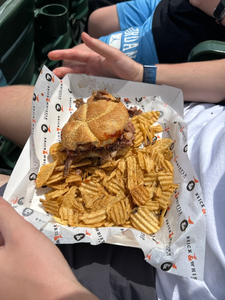 View from our seats. I always fret about buying tickets as Josh always waits until we’re walking to a stadium to buy from stubhub or another ticking site. It makes me nervous but it usually works out. Xavier bought these at noon before the 1pm start and they were cheaper than the standing room tix we would have bought in the previous days. I guess Father Knows Best!